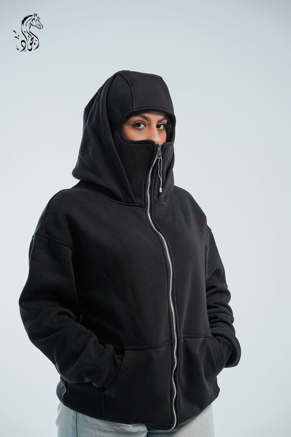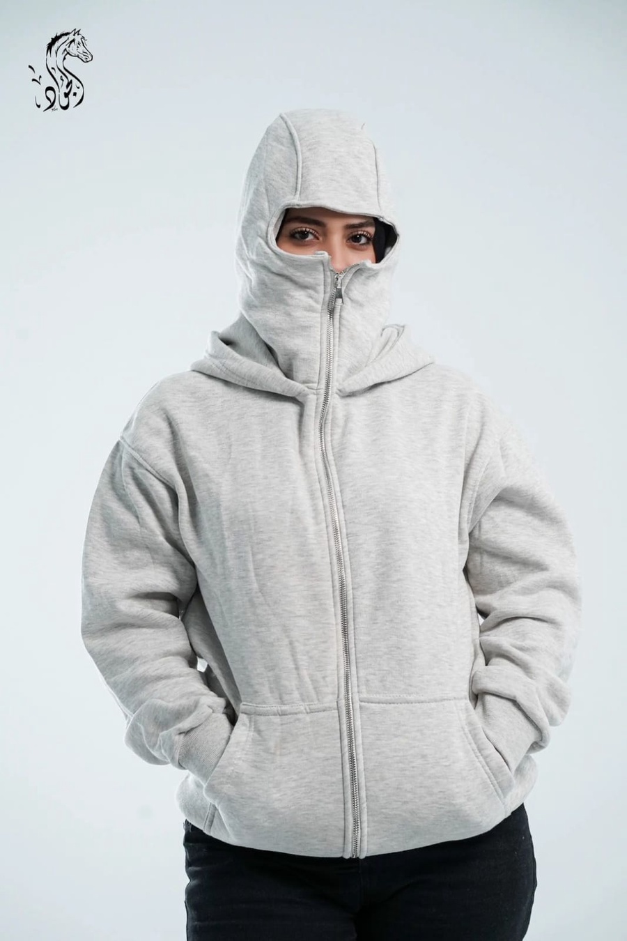 - Style: Oversized Fit featuring a full-zip closure that extends into a face mask (Balaclava style) and a double-layered hood for a unique, layered look.